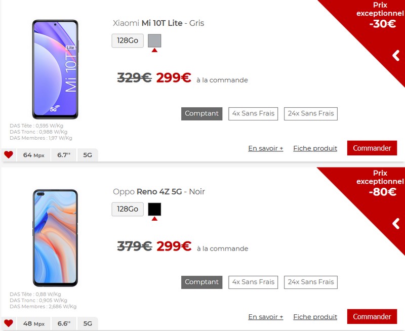 Avec le choc des smartphones, Univers Freebox vous propose des comparatifs entre les smartphones vendus à tarifs équivalents via la boutique de Free Mobile, au grès des nouvelles disponibilités et des mouvements de prix. Il s’agit de vous aider à choisir selon vos attentes. Aujourd’hui, nous opposons les Xiaomi Mi 10T Lite et Oppo Reno4 Z, deux modèles 5G proposés à 299 euros, grâce à des baisses de prix respectives de 30 et 80 euros. Notez d’ailleurs qu’ils sont disponibles en 4x ou 24x sans frais.