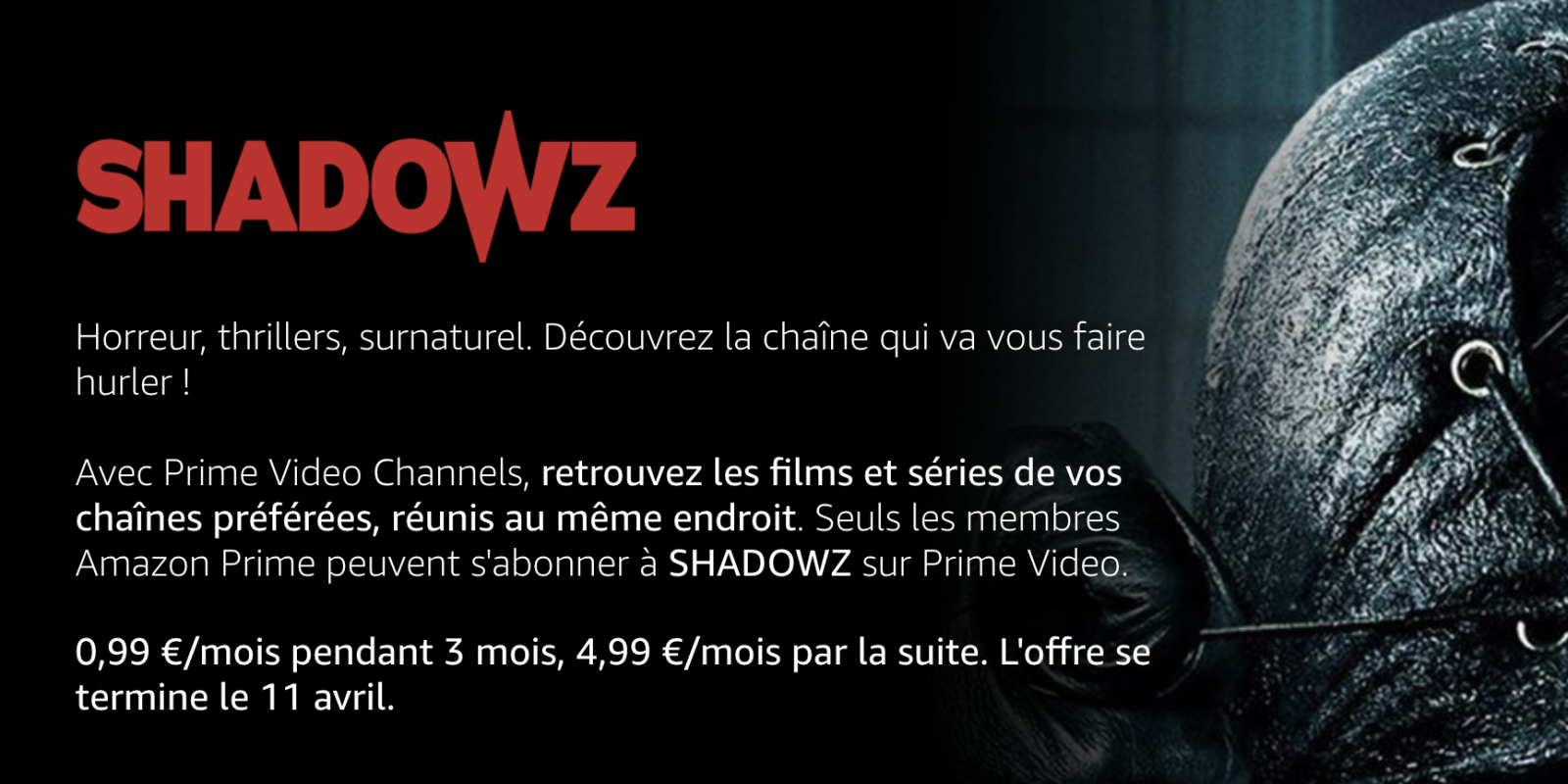 Fans d’horreur, vous serez servis. Le service de SVoD Shadowz passe lui aussi à 1,99€/mois pendant 6 mois au lieu de 4,99€. Ce service de “screaming” est spécialisé dans les films d’horreurs et dans le fantastique. Les amateurs de cinéma du genre pourront ainsi y retrouver des films cultes comme la saga Hell Raiser, Battle Royale mais aussi des films un peu plus de niche, et certaines exclusivités.