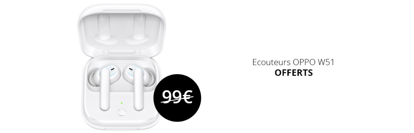 De quoi accompagner vos sessions de running. Pour tout achat d’un Oppo Find X3 Lite chez Free Mobile, vous recevrez une paire d’écouteurs sans fil d’Oppo. D’une valeur de 99€, il s’agit des Oppo W51.