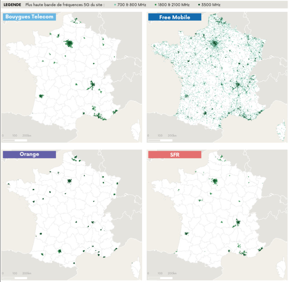 Carte et déploiement 5G : Free reste en tête et il accélère beaucoup plus vite qu’Orange, Bouygues et SFR