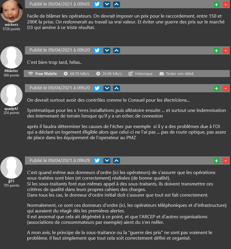 Laure de la Raudière, présidente de lArcep, met un coup de pression aux opérateurs pour continuer à déployer la fibre, mais en s’assurant d’une qualité d’intervention décente. Certains Freenautes viennent même proposer leurs solutions, pour être sûr que les sous-traitants puissent effectuer leur travail dans de bonnes conditions. Qui sait, peut être que l’Arcep viendra jeter un coup d’oeil !