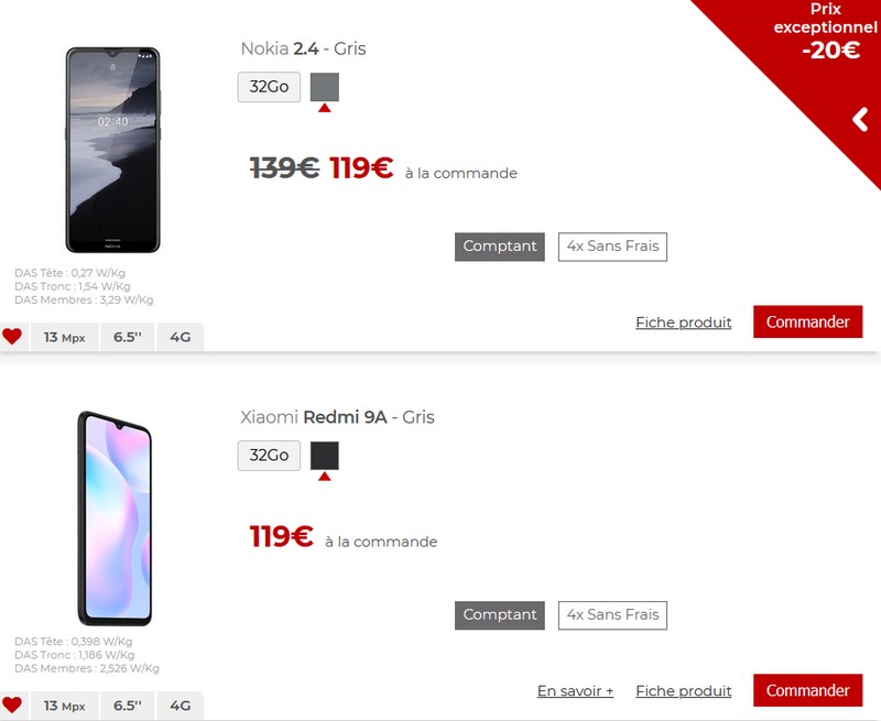 Avec le choc des smartphones, Univers Freebox vous propose des comparatifs entre les smartphones vendus à tarifs équivalents via la boutique de Free Mobile, au grès des nouvelles disponibilités et des mouvements de prix. Il s’agit de vous aider à choisir en fonction de vos attentes. Aujourd’hui, nous opposons les Xiaomi Redmi 9A et Nokia 2.4, tous deux proposés à 119 euros, grâce à une baisse de prix de 20 euros sur le premier. Notez d’ailleurs qu’ils sont disponibles en plusieurs fois sans frais.