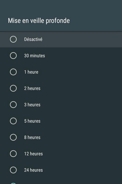 On pourra alors décider de ne jamais mettre en veille ou de mettre en veille après un laps de temps définis compris entre 30 minutes et 12 heures.