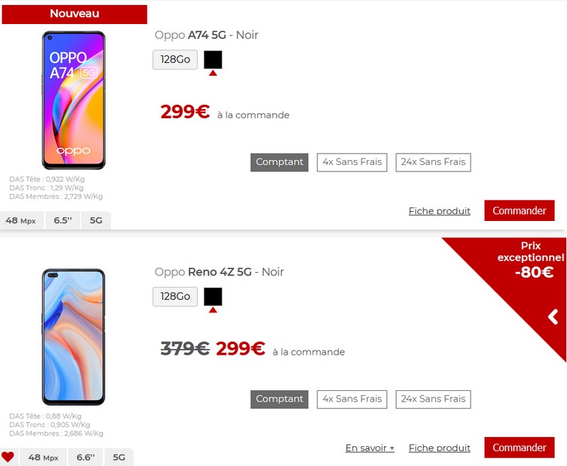La boutique Free Mobile propose actuellement deux smartphones 5G à 299 euros. Lequel se présente comme le meilleur choix ? Avec le choc des smartphones, Univers Freebox vous propose un comparatif des smartphones vendus à tarifs équivalents via la boutique de Free Mobile. Il s’agit de vous aider à choisir selon vos attentes. Aujourd’hui, nous opposons les Oppo A74 5G et Oppo Reno4 Z, tous deux affichés à 299 euros, grâce à une ristourne de 80 euros sur le second. Notez que le premier vient tout juste d’arriver chez l’opérateur.