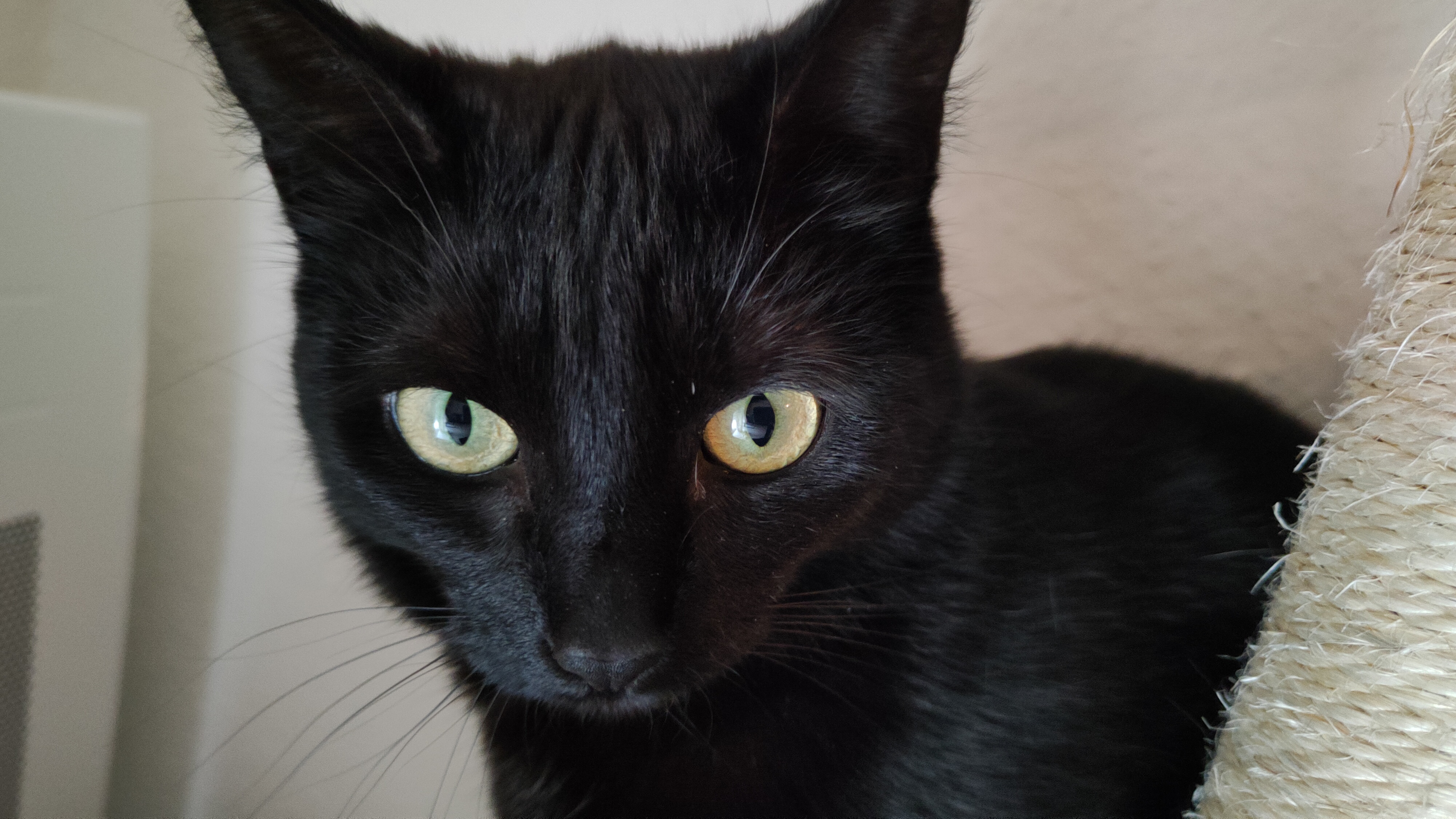 Une photo en intérieur avec un félin un peu mal luné (on l’avait dérangé pendant la sieste…) :