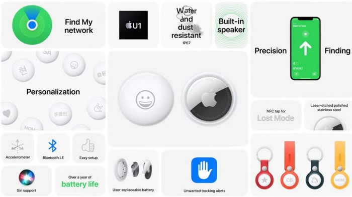 Apple a officialisé ses AirTag lors de cette Keynote, un petit objet rond permettant de retrouver facilement un objet du quotidien comme votre sac à dos ou votre trousseau de clés. Localisez vos objets perdus grâce à votre iPhone qui vous guidera jusqu’à l’objet en question. De plus les AirTag ont la capacité d’émettre un bruit pour les localiser plus facilement. Vendu 35€ à l’unité ou 119 euros par lot de quatre. Les premières livraisons sont prévues pour le 30 avril prochain.
