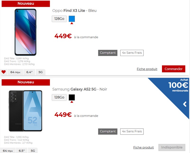 La boutique Free Mobile propose actuellement deux smartphones 5G à 449 euros. Lequel se présente comme le meilleur choix ? Avec le choc des smartphones, Univers Freebox vous propose un comparatif des smartphones vendus à tarifs équivalents via la boutique de Free Mobile. Il s’agit de vous aider à choisir en fonction de vos attentes. Aujourd’hui, nous opposons les Oppo Find X3 Lite et Samsung Galaxy A52 5G, tous deux affichés à 449 euros.
