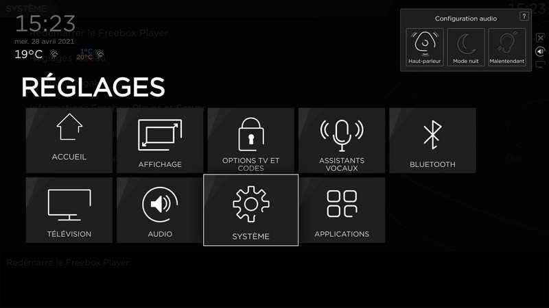 Depuis la page d’accueil, il faut faire défiler jusqu’à tomber sur le bandeau “Réglages” et y chercher la section “Système”.