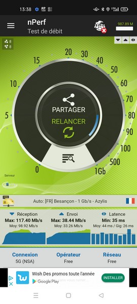 L’Oppo A94 5G est, comme son nom l’indique, compatible avec la 5G récemment lancée en France. Il supporte également la B28, soit la 4G 700 MHz, chère aux abonnés Free Mobile.