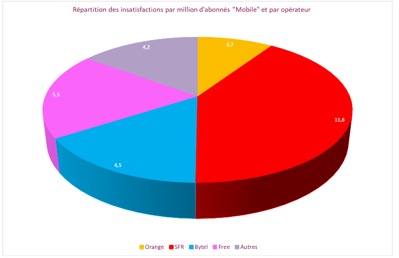 Ainsi, sur un million d’abonnés Free Mobile, 5.5 ont émis une plainte. C’est bien moins que SFR qui en comptabilise 11.6 plaintes par million d’abonnés, mais plus que Bouygues Télécom (4.5 plaintes) et Orange (2.7 plaintes par million d’abonnés).