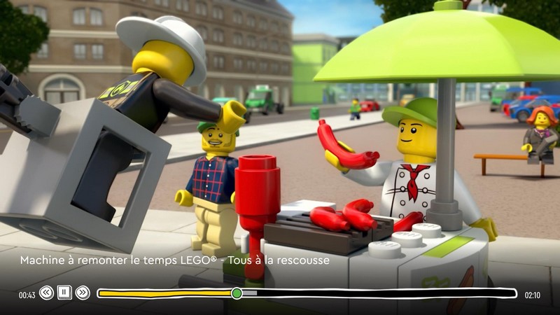 Petit clin d’oeil à la licence Lego, une animation avec des logos matérialise le temps de chargement lors d’une remise en lecture ou d’un avancement dans le contenu.