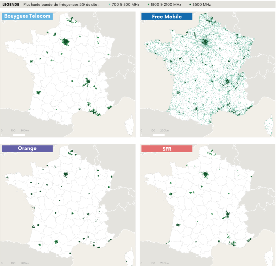 Carte et déploiement 5G : Free caracole en tête et couvre la plus grande partie du territoire