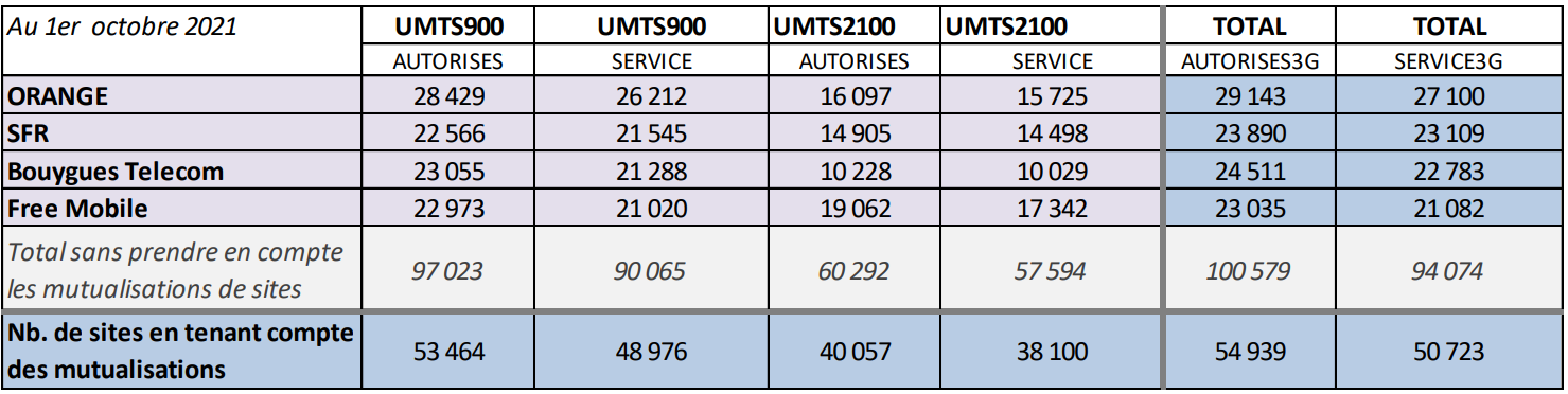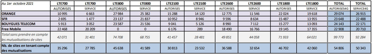 L’ANFR a publié les chiffres de déploiement des réseaux mobiles 4G/3G au 1er octobre 2021.