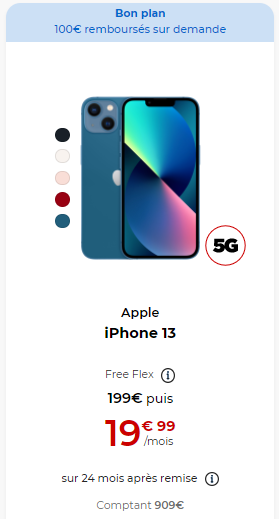 Free promo une nouvelle promo de 100€ sur l’iPhone 13, si vous choisissez la formule Free Flex durant les 10 prochains jours.