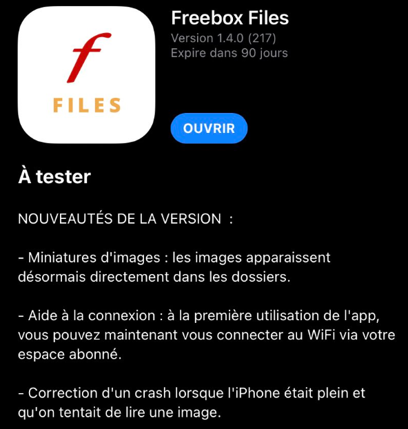 Free lance une nouvelle mise à jour de Freebox Files pour iOS, pour ceux qui veulent la tester