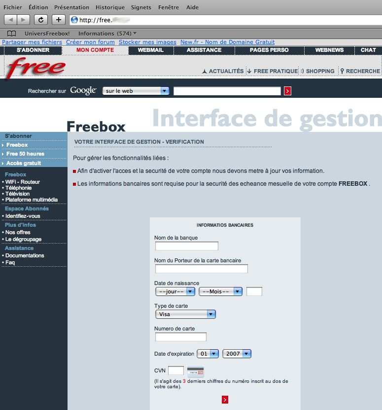 - Etape 3 : Pire, après s’être littéralement gavé de nos informations les plus sensibles, le pirate tente également de dérober les informations bancaires :