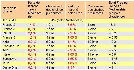 parts de marchés des chaînes TV de Freebox TV pour que la comparaison soit