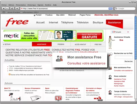 Il y a du nouveau sur le site web de l’assistance des Freenautes. En effet, depuis quelques minutes, un nouveau lien, nommé "mon assistance Free" a fait son apparition sur la colonne de droite.