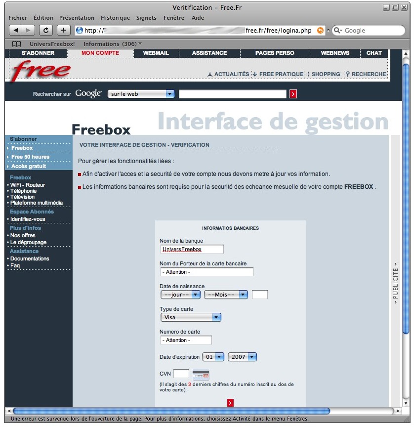 [MàJ] Attaque Phishing contre Free et les Freenautes