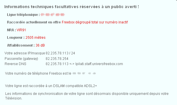 Caractéristiques techniques de votre ligne à partir de votre téléviseur (Free Assistance)