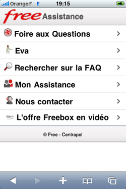 Free annonce aujourd’hui que son service d’assistance propose désormais une version spécialement adaptée au navigateur de l’iPhone et de l’iPod Touch (Safari). Les Freenautes peuvent ainsi consulter la Foire aux Questions (FAQ) spécialement adaptée à l’iPhone, où ils peuvent retrouver les guides vidéo pour installer leur Freebox. L’assistante virtuelle Eva est également présente pour répondre aux questions des Freenautes et le moteur de recherche de la FAQ disponible pour cette version.