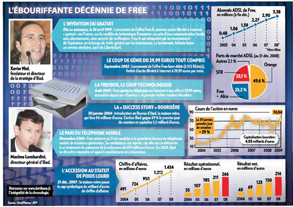 L’édition papier du journal La Tribune y consacre ainsi son édito : "Free a fait bouger le marché. Si les français, traditionnellement peu technophiles, se sont hissés il y a quelques années en tête des européens les plus branchés sur le haut débit, c’est en partie grâce à lui. Ses innovations marketing (le 29,99€ tout compris) et technologique (la Freebox) ont forcé la concurrence à réagir vite et fort." écrit Jean-Baptiste Jacquin.