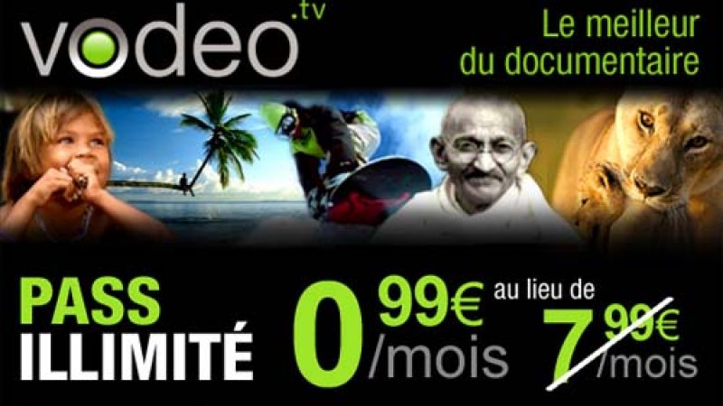 Vodéo.tv propose aux freenautes de découvrir son service VOD pour seulement 0,99€ le mois, au lieu de 7,99€ par mois. Pour ce tarif, valable uniquement jusqu’au 30 juin, vous aurez accès de façon illimitée aux 3500 documentaires du catalogue de Vodéo.tv qui couvre toutes les thématique : Découverte, Nature, Sciences, Arts, Histoire ou Société.