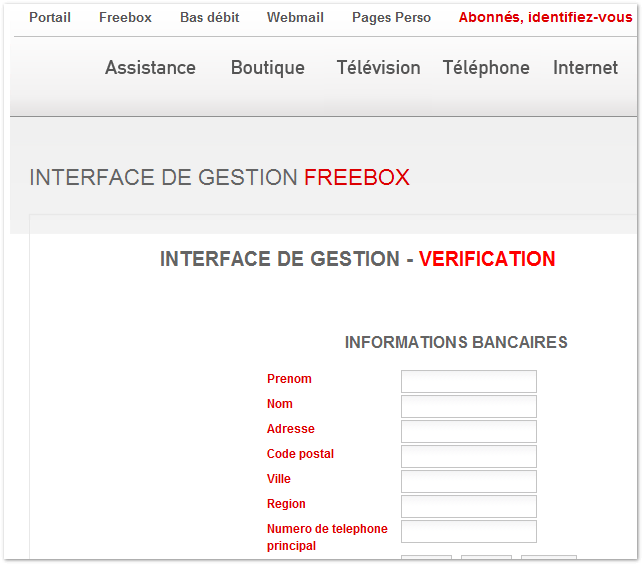 Le second lien renvoie, quant à lui, sur une page imitant l’ancienne console de gestion des abonnés. Nous avons une nouvelle fois averti Free.