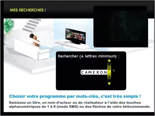 Si vous avez envie de retrouver un programme avec Brad Pitt ce soir, confortablement installé devant votre téléviseur full HD, rien de plus simple, avec la télécommande il suffit de taper les premières lettres du nom de l’acteur ou du programme recherché.
