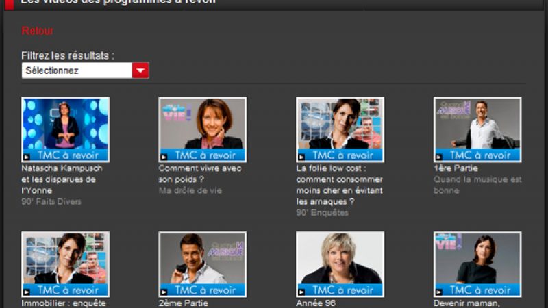 A l’instar de TF1, M6 ou encore Arte, TMC vient de lancer son propre service de télévision de rattrapage. Il est pour le moment très limité puisque seules une dizaine d’émissions sont disponibles en consultation, comme Fan des années 90, 90’ Enquêtes ou encore Ma drôle de Vie. Celles-ci devraient cependant être renouvelées toutes les semaines.