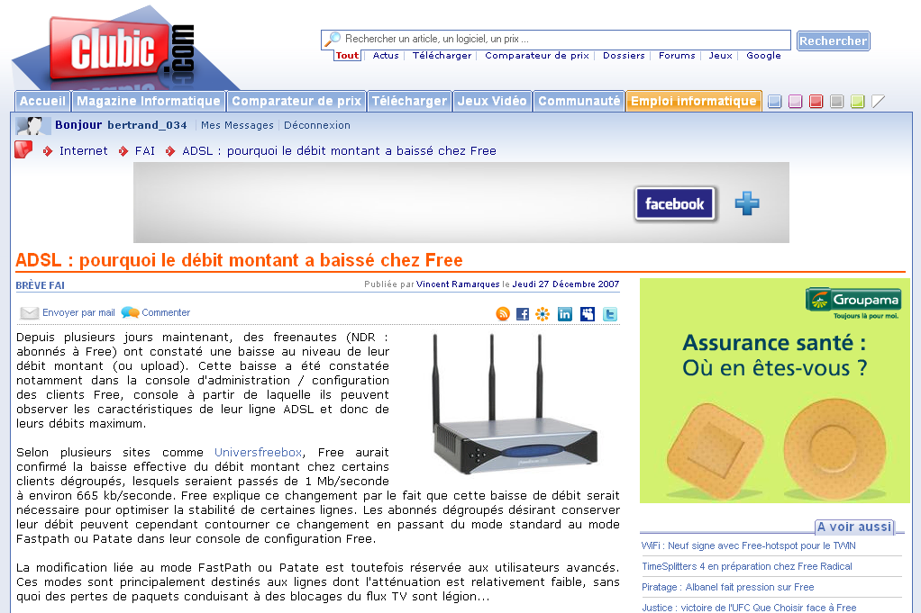 Depuis plusieurs jours maintenant, des freenautes (NDR : abonnés à Free) ont constaté une baisse au niveau de leur débit montant (ou upload). Cette baisse a été constatée notamment dans la console d’administration / configuration des clients Free, console à partir de laquelle ils peuvent observer les caractéristiques de leur ligne ADSL et donc de leurs débits maximum.
