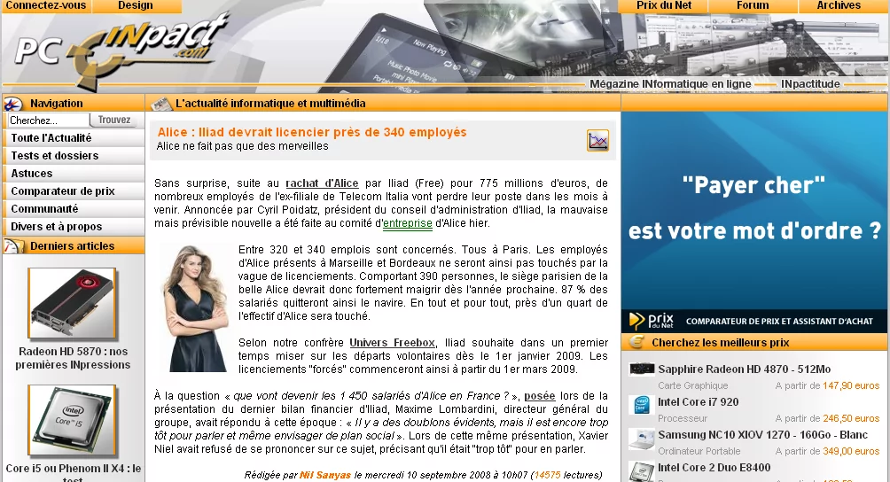Sans surprise, suite au rachat d’Alice par Iliad (Free) pour 775 millions d’euros, de nombreux employés de l’ex-filiale de Telecom Italia vont perdre leur poste dans les mois à venir. Annoncée par Cyril Poidatz, président du conseil d’administration d’Iliad, la mauvaise mais prévisible nouvelle a été faite au comité d’entreprise d’Alice hier.