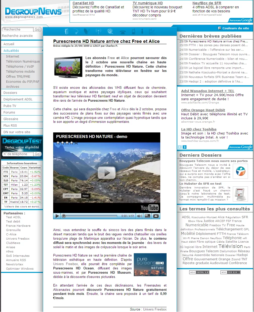 Les abonnés Free et Alice pourront savourer dès le 2 octobre une nouvelle chaîne en haute définition : Purescreens HD Nature. Cette chaîne transforme votre téléviseur en fenêtre sur les paysages du monde.