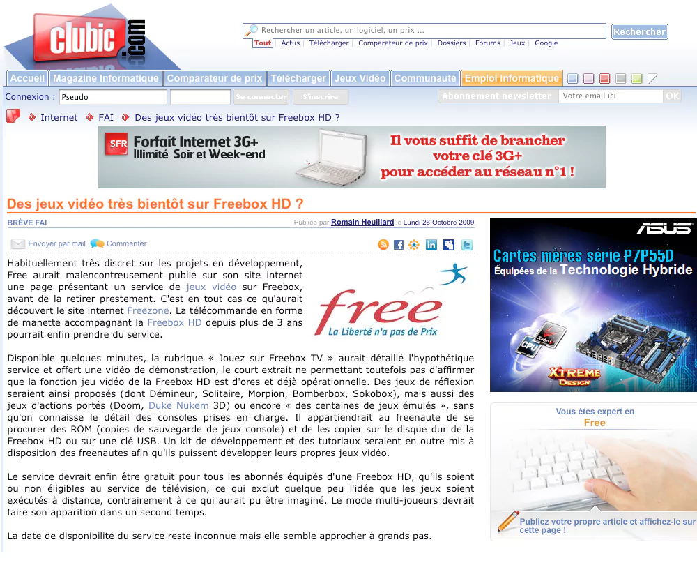 Habituellement très discret sur les projets en développement, Free aurait malencontreusement publié sur son site internet une page présentant un service de jeux vidéo sur Freebox, avant de la retirer prestement. C’est en tout cas ce qu’aurait découvert le site internet Freezone. La télécommande en forme de manette accompagnant la Freebox HD depuis plus de 3 ans pourrait enfin prendre du service.