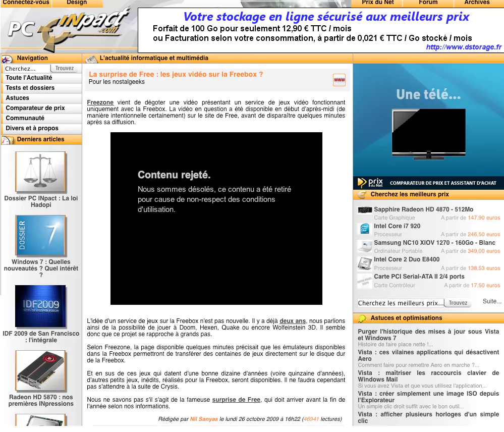 Freezone vient de dégoter une vidéo présentant un service de jeux vidéo fonctionnant uniquement avec la Freebox. La vidéo en question a été disponible en début d’après-midi (de manière intentionnelle certainement) sur le site de Free, avant de disparaître quelques minutes après sa diffusion.