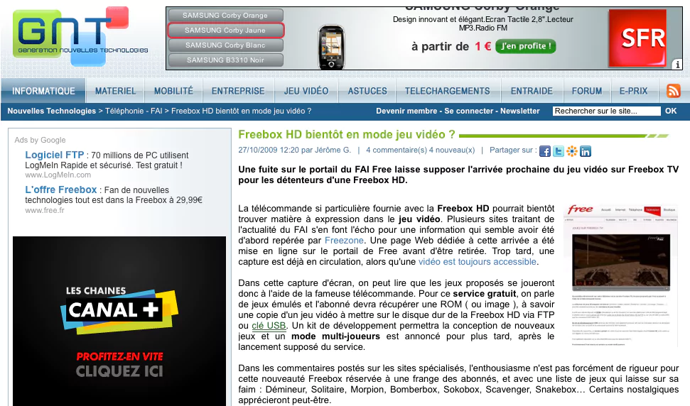 Une fuite sur le portail du FAI Free laisse supposer l’arrivée prochaine du jeu vidéo sur Freebox TV pour les détenteurs d’une Freebox HD.