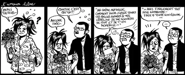 C’est l’histoire de Tanxxx, artiste de son état, qui suite à un incident avec sa Freebox, demande à être remboursée des frais d’assistance engendrés par l’appel à la hotline. Au lieu des reproches acerbes que l’on a l’habitude de formuler dans ces moments là, notre Tanxxx envoie une lettre d’amour torride à son « cher Free », lui demandant de faire un geste.