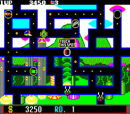 Fantasy Zone 3 – The Maze est une sorte de Pac Man amélioré dans lequel vous pourrez des obtenir armes pour tuer tous ceux qui vous empêchent de récupérer les boules qui se trouvent dans le labyrinthe. Par ce que bien sur, pour aller au niveau suivant, vous devez avoir récupéré toutes les boule du niveau précédent.