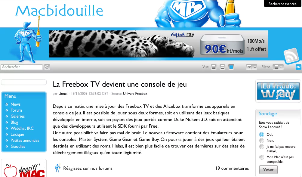 Depuis ce matin, une mise à jour des Freebox TV et des Alicebox transforme ces appareils en console de jeu. Il est possible de jouer sous deux formes, soit en utilisant des jeux basiques développés en interne, soit en payant des jeux portés comme Duke Nukem 3D, soit en attendant que des développeurs utilisent le SDK fourni par Free.