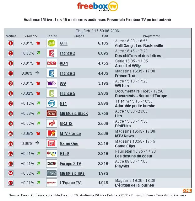 La présentation de l’audience des chaines a changée aujourd’hui et se met au goût du nouveau site web de Free :