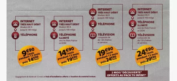 Petite subtilité par rapport aux offres existantes, dans 2 d’entre elles, si le téléphone est inclus, les communications illimitées vers les fixes ne le sont pas. A noter également que le tarif promotionnel durant les 12 premiers mois ne sera pas forcement présent dans l’offre définitive puisque celle présentée ci-dessus est réservée aux 500 premières inscriptions de salariés Auchan.