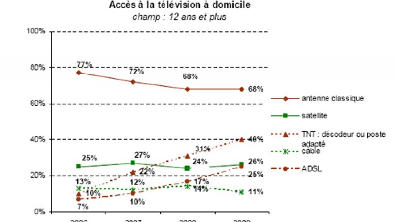 Il en ressort que la télévision par ADSL rencontre un franc succès auprès français puisque 25% d’entre eux utilisent ce mode réception. Ils n’étaient que 17% en 2008.