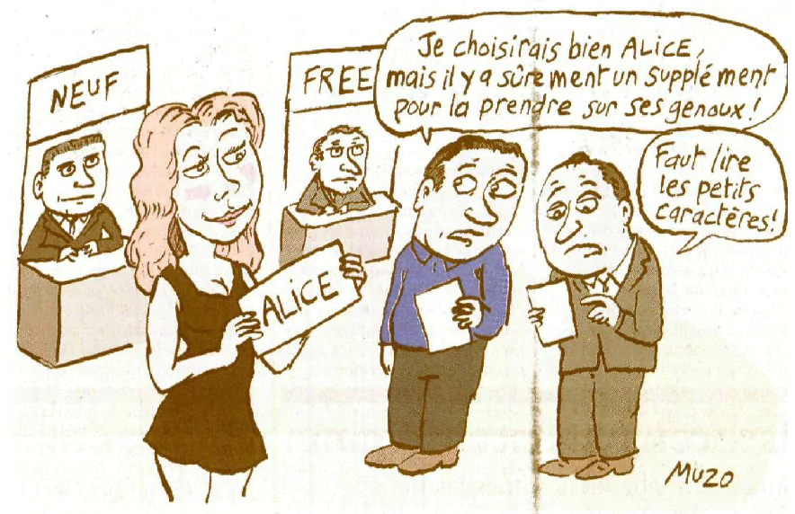 Le journal Le Monde consacrait ce jour un dossier aux offres triplay des fournisseurs d’accès. Il y était surtout question de ce que proposaient réellement les uns et les autres dans leurs offres respectives. Pour illustrer ce dossier, MUZO met ainsi en scène la belle Alice :