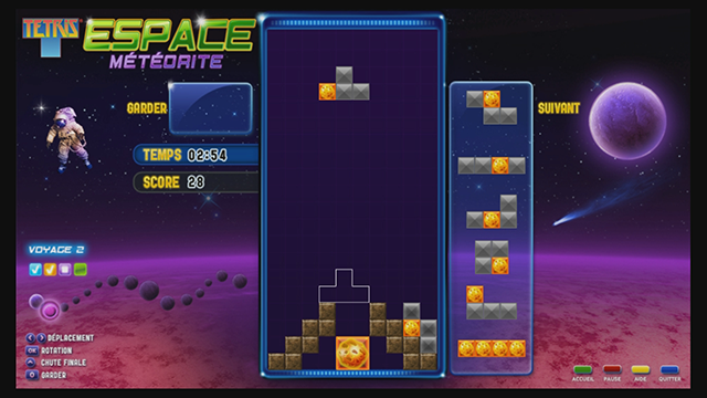 Cette version de Tetris reste donc assez proche des autres versions disponible sur d’autres supports et n’apporte réellement qu’une « nouveauté », le mode Espace, les deux autres modes de jeu se retrouvant dans la plupart des autres opus. Elle pourrait aussi paraître un peu facile pour les joueurs les plus assidus de Tetris mais conviendra parfaitement à un joueur occasionnel. Seul détail que nous avons pu noter, au lancement du jeu il semble y avoir des ralentissements qui ont ensuite disparu après un petit temps de jeu. Nous vous conseillons aussi de jouer à la manette, qui est bien plus pratique que de jouer à la télécommande.