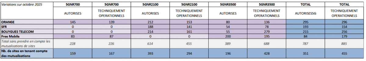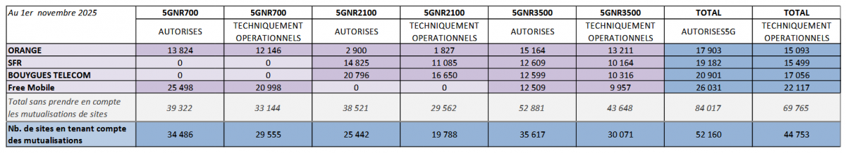 Comment se passe le déploiement de la 5G en France ? L’ANFR a dévoilé les chiffres des sites actuellement autorisés ou actifs dans l’Hexagone au premier novembre 2025.